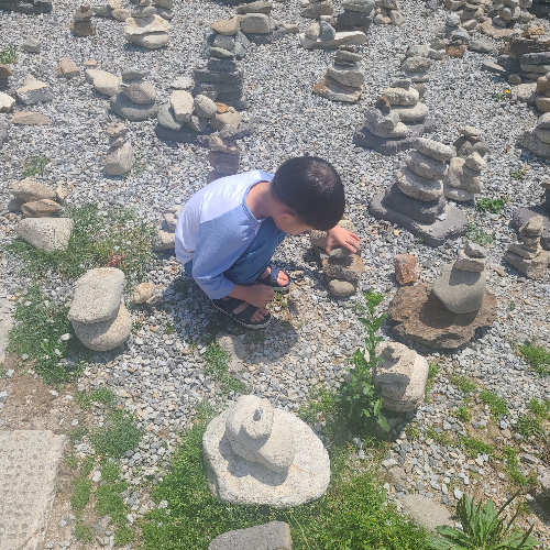 날씨가 더웠는데도 한참동안 앉아서 돌쌓기를 하면 즐겼네요.