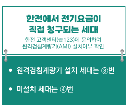 한전고객선테(123) 문의하여 원격검침계랑기(AMI)설치 여부를 확인이 필요합니다.