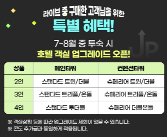 1. 7~8월 투숙시 호텔 객실 업그레이드