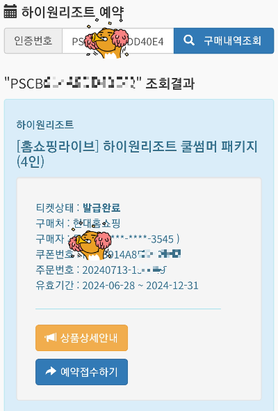티켓상태, 구매처, 구매자, 쿠폰번호, 주문번호, 유효기간이 안내되는데요.