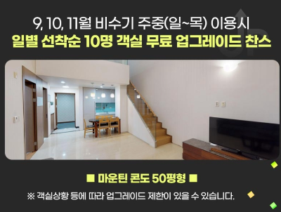 9, 10, 11월 비수기 (일~목) 이용시 선착순 업그레이드 50평이용할수 있는데요.