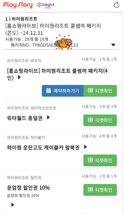 현대 홈쇼핑에서 구매하신 하이원리조트 패키지 상품으로 하이원리조트에서 알차고 즐거운 시간 보내시길 바랄께요~