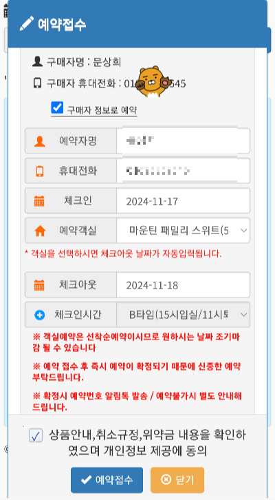 [예약전 유의사항] 을 꼼꼼히 읽어주세요.