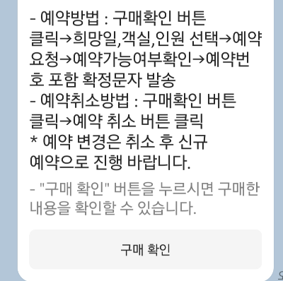 구매확인을 눌러서 예약방법에 따라서 예약해 보겠습니다.