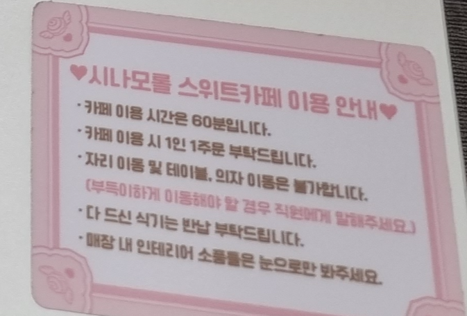 시나모롤 스위트 매장앞에 도착을 하면 주민등록을 보여주고 예약자 본인을 확인 절차를 하고 입장을 하게 됩니다.
