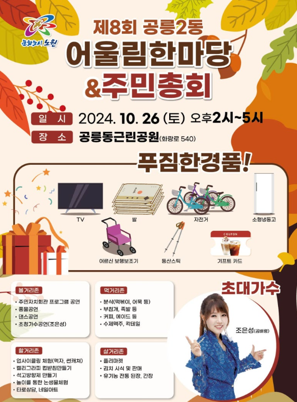 24. 10. 26 토요일 노원 마을 축제 잘 선택하셔서 온가족들과 행복한 시간들 만들어 보시면 즐겨보시기 바랍니다.