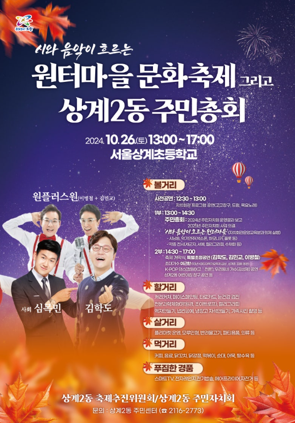 10월26일 노원 동 마을축제 놀러오세요(중계1동 은행골 어울림, 중계사랑뜨락축제,상계2동 원터마을문화축제, 공릉2동어울림한마당)