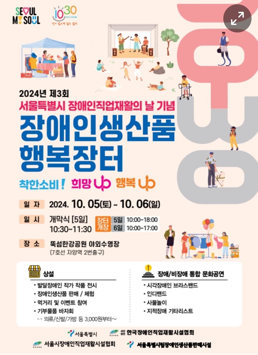 (10.5~10.6) 뚝섬한강공원 장애인 생산품 행복장터, 체험, 먹거리, 바자회 안내