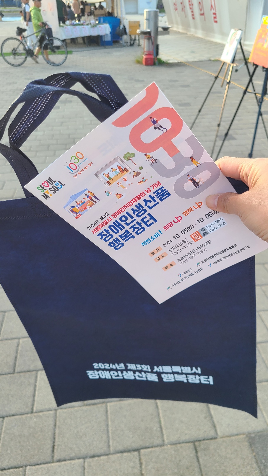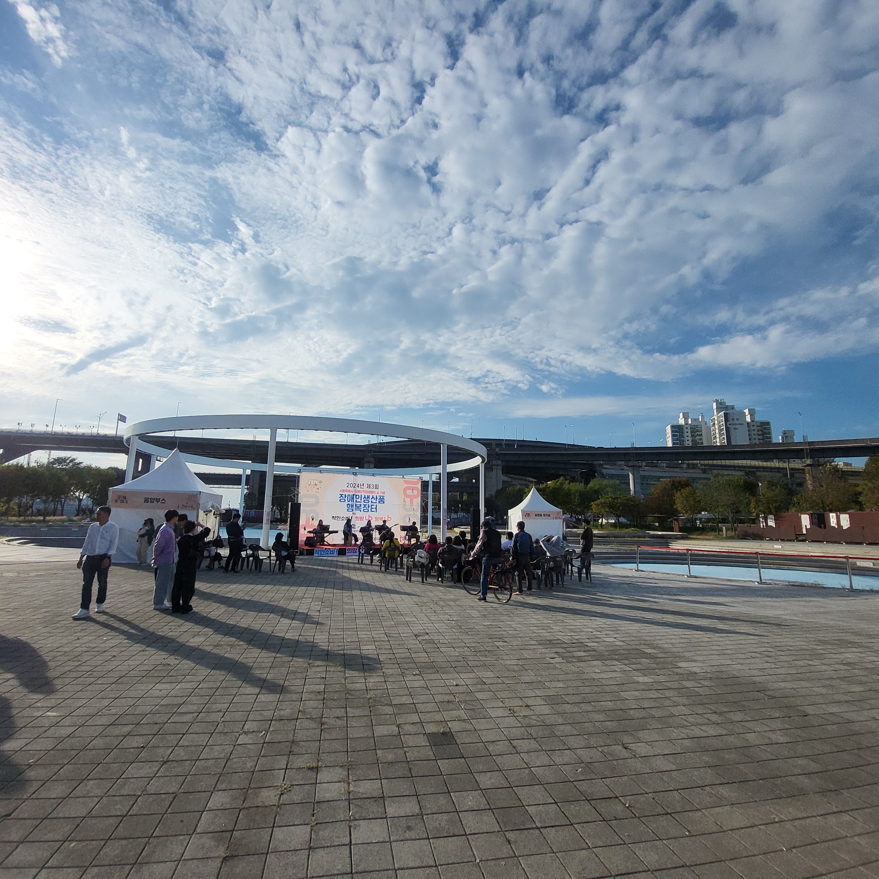 뚝섬한강공원을 지나가면서 장애인생산물 행복장터 행사장을 발견하게 되었어요.
