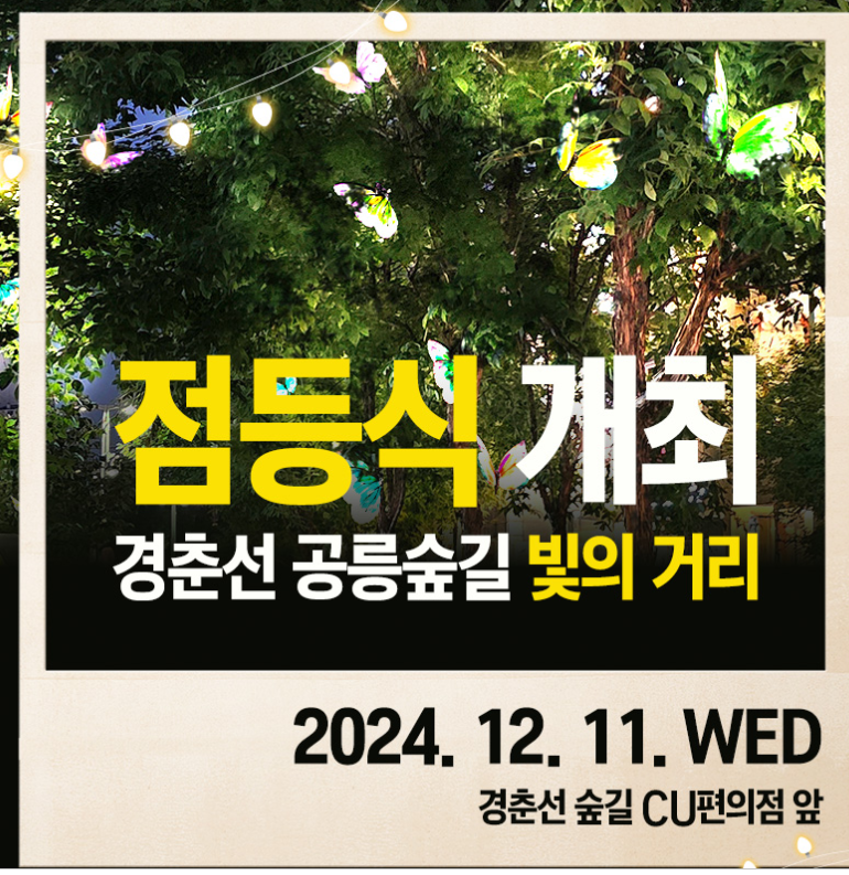 지역 주민들에게 아름다운 야경과 문화적 경험을 제공할 예정인 경춘선 공릉 숲길 '빛의 거리' 점등식과 벽화 제막식 행사를 안내해 드릴께요~~