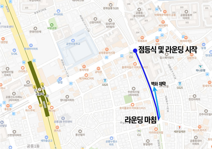 경춘선 공릉 숲길 CU 편의점 앞 진행됩니다.