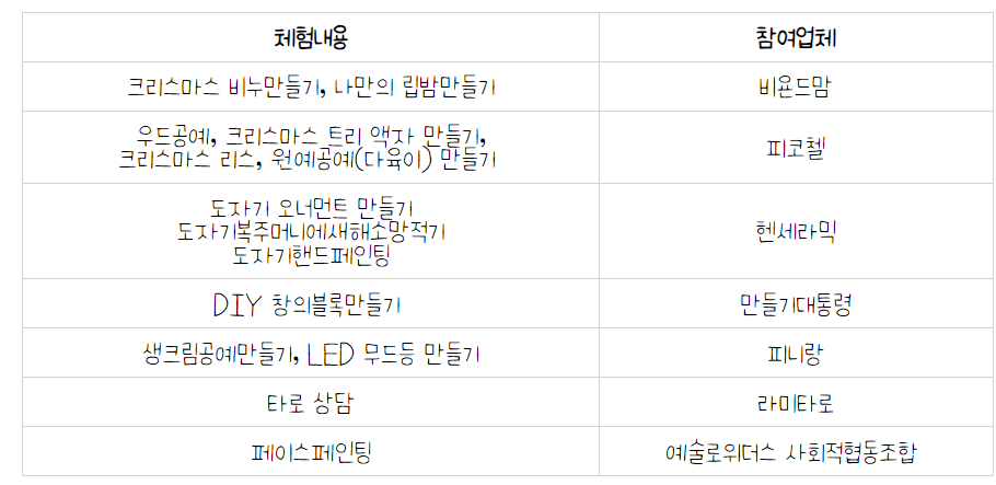 크리스마스를 테마로 한 다양한 체험 부스가 운영됩니다.