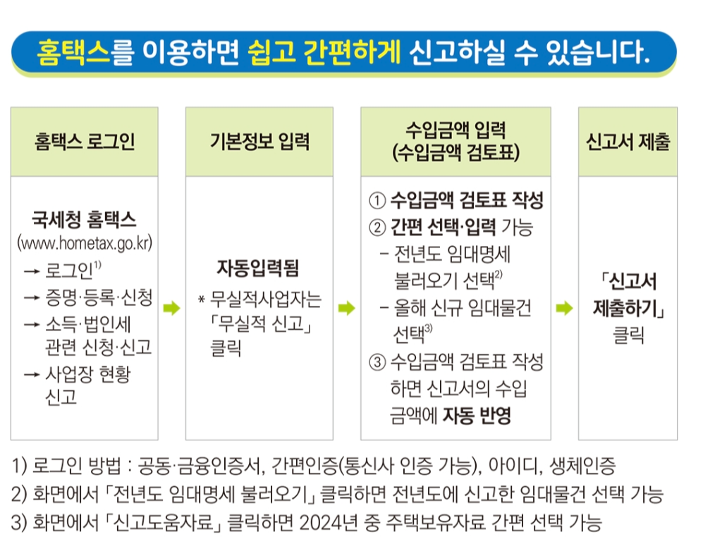 2024년 주택임대사업자 간주임대료 귀속 사업장현황신고, 홈텍스 신고방법