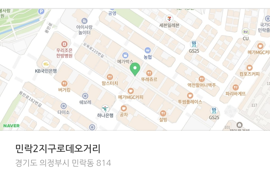 의정부시 민락2지구 로데오거리(의정부시 오목로 225번길 /경기도 의정부시 민락동 814)