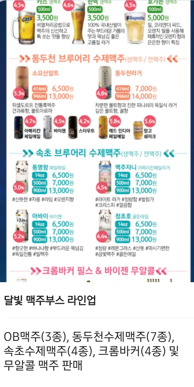 소요산알트 6,500원, 13,000원 / 동두천 라거 7,000원, 14,000원