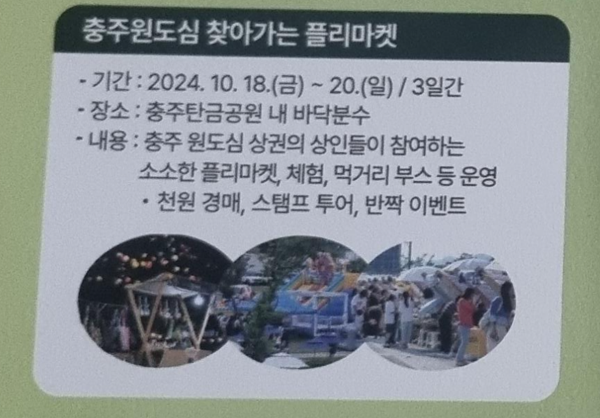 | 2024 찾아가는 충주 원도심 플리마켓 행사 안내 (7) | 2024.10.19 |