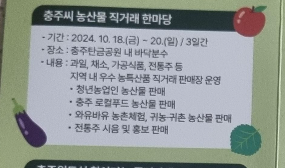 충주 여행을 하면서 우연히 '2024 충주씨 농산물 직거래 한마당'을 다녀왔는데요.