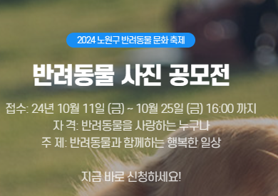 11/2일에 열리는 2024 노원 반려동물 문화축제가 벌써 부터 기대가 되는데요.