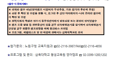 삼육대학교 평생교육원 영어캠프 02) 3399-1202