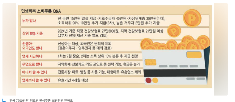 이전의 재난지원금과 달리, 이번에는 단순한 현금이 아닌 지역화폐 형식의 소비쿠폰으로, 소비를 유도하고 내수를 살리는 것이 목적입니다.
