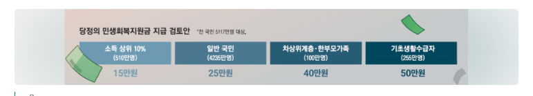 이렇게 하면 기초생활수급자는 총 50만 원, 일반 국민도 최대 25만 원을 받을 수 있게 됩니다.