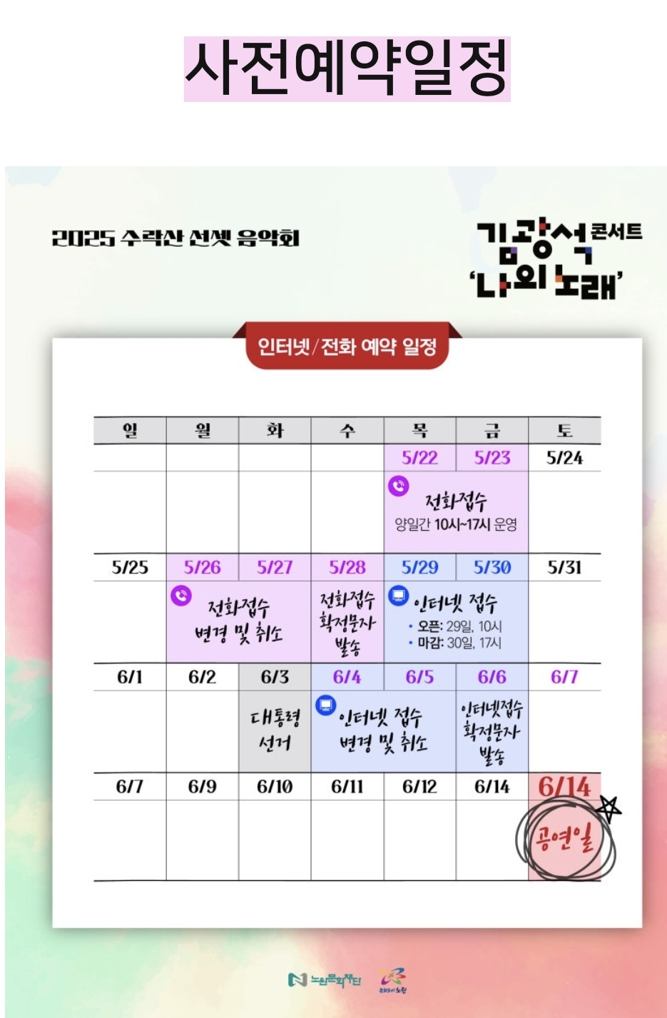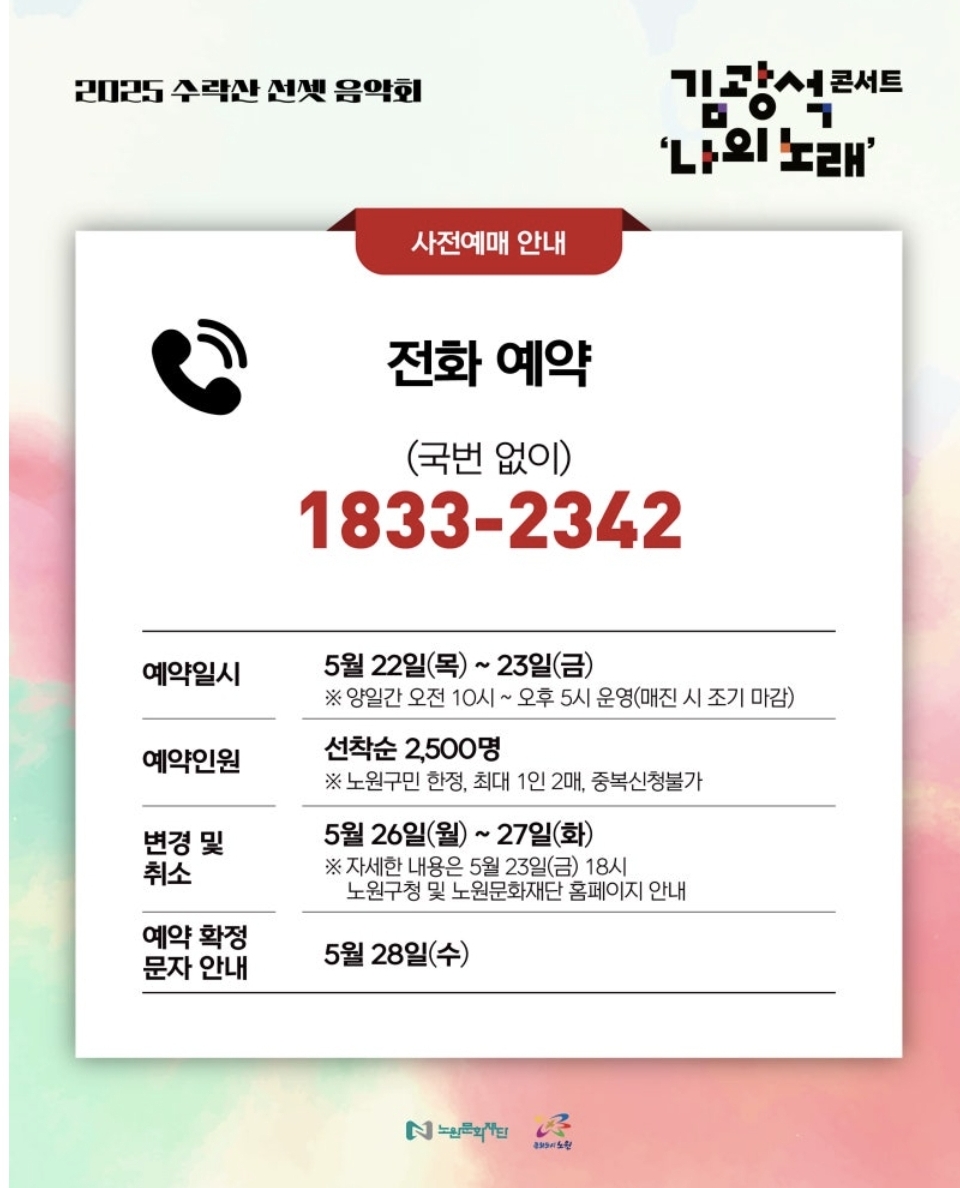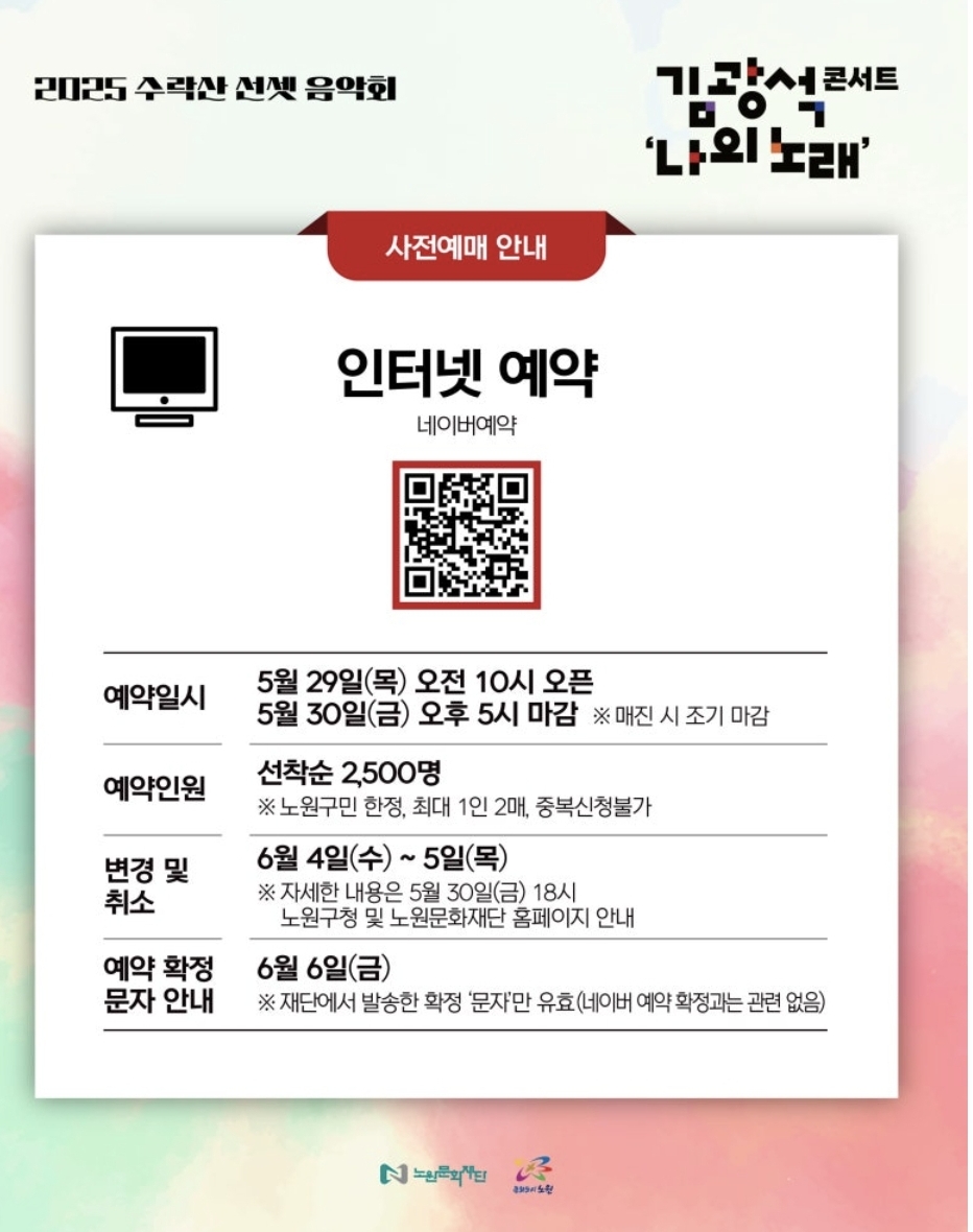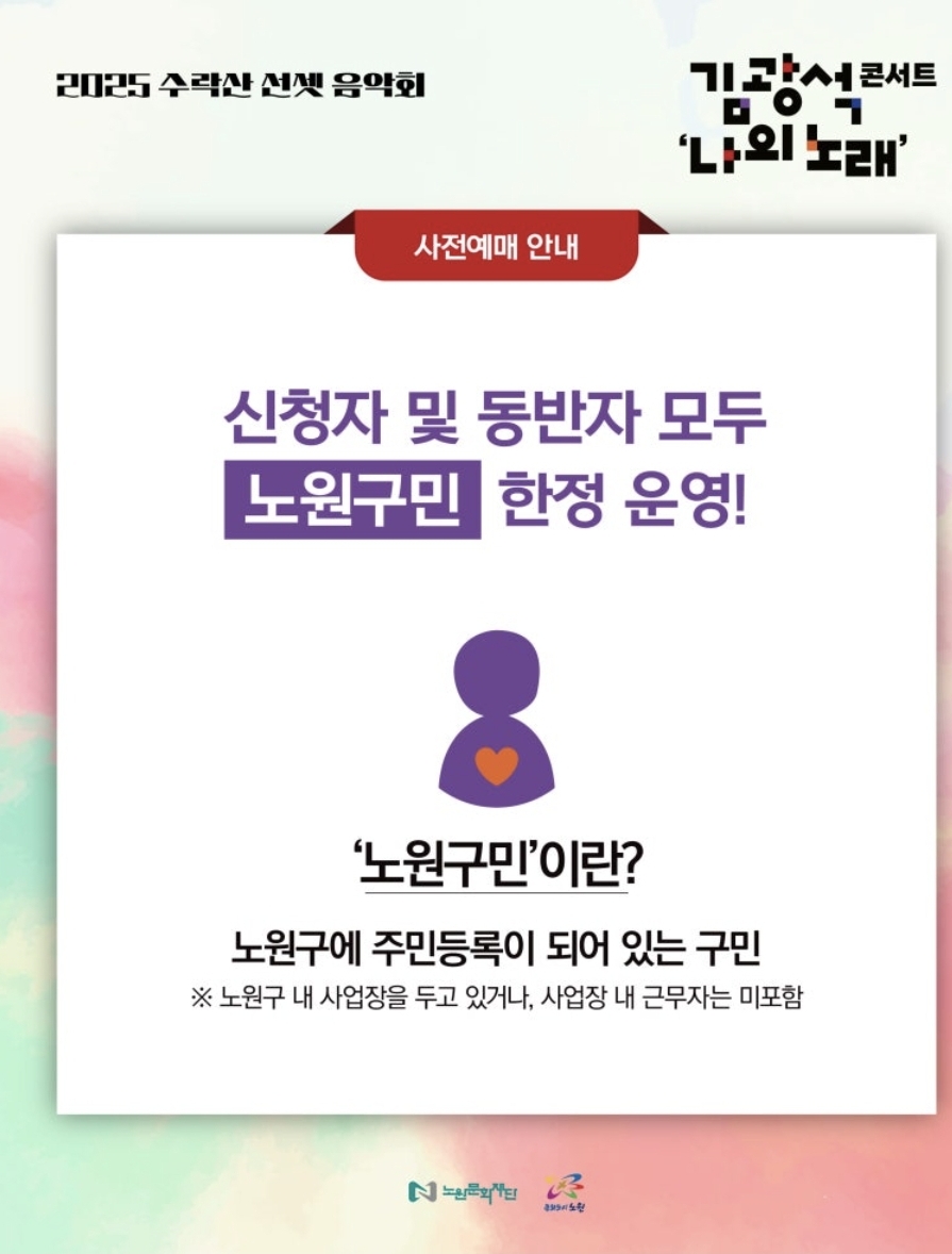 노원 2025 수락산 선셋 음악회 '김광석콘서트 나의 노래' 일정안내, 공연사전예약방법