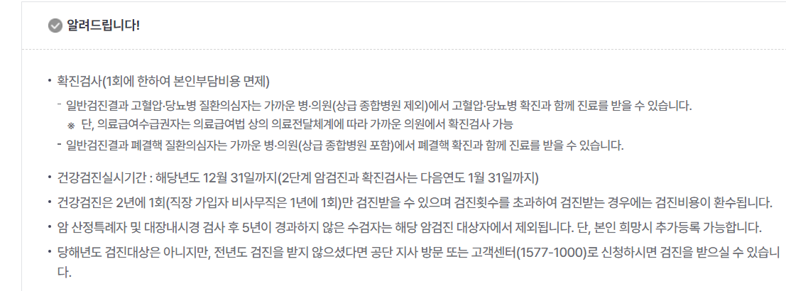 연장기간은 25. 12. 31까지 검진 받을 수있다고 하니깐 참고하세요~