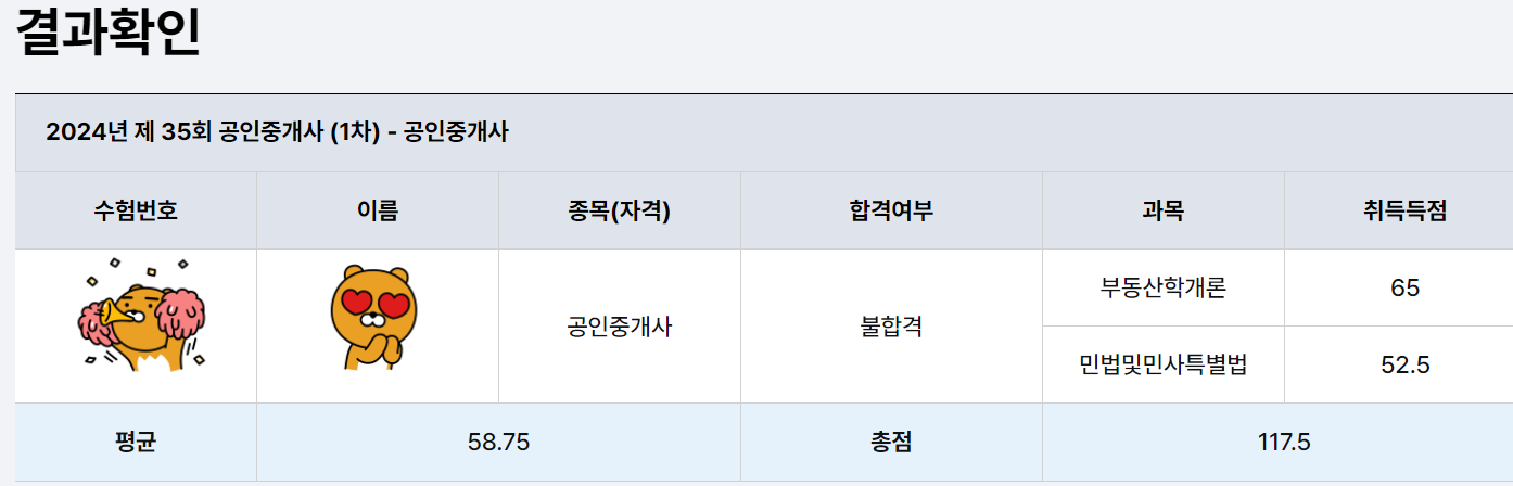 2024 제 35회 공인중개사 1차, 2차발표일(11. 27) 결과