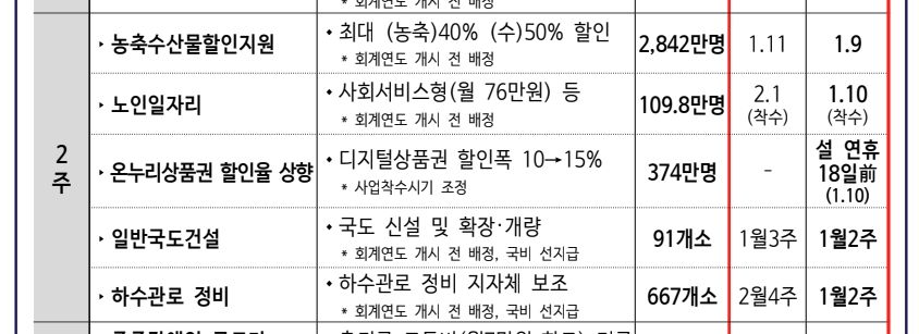 민생지원 일정을 살펴보면 경제를 활성화하기 일환으로 24년 일정에 비해서 올해는 1월, 2월로 앞당겨져서 진행되는 일정들이 늘어났는데요~