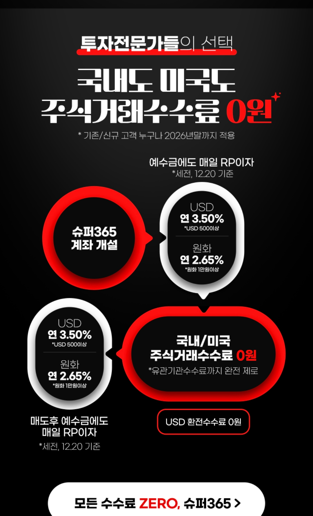 메리츠 super 365에서는 미국 주식 구매할때 수수료가 없어서 매일 매일 구매해도 걱정이 없겠어요.