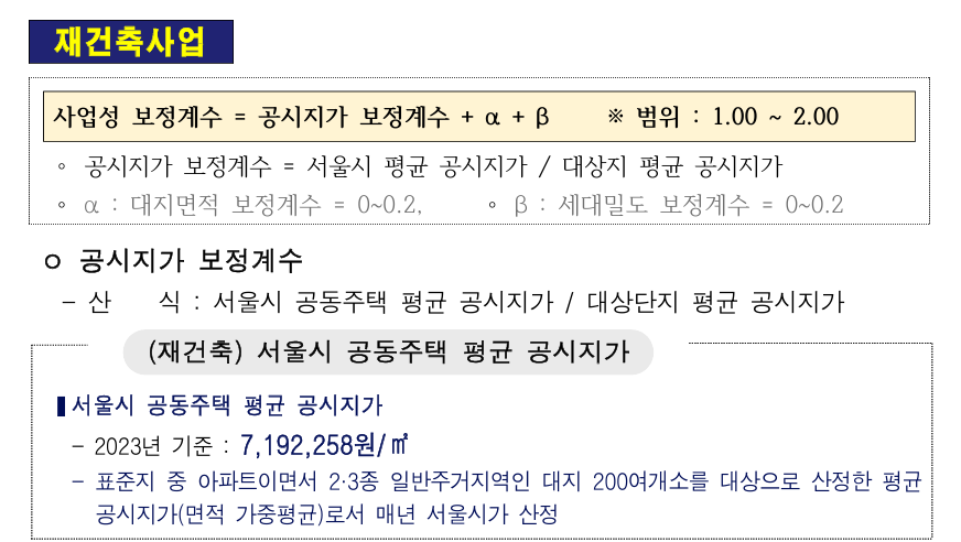 사업성 보정계수 범위가 1~2까지 있는데