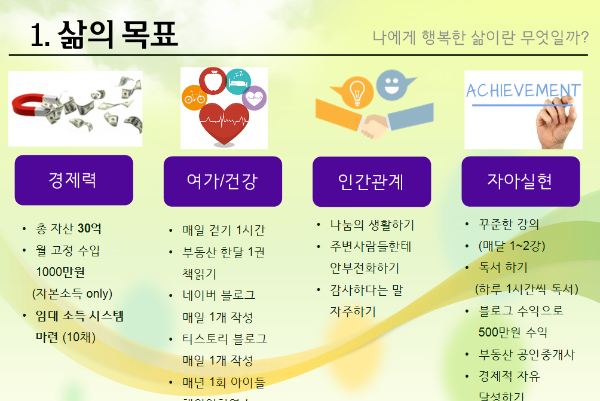 나의 앞으로 미래에 대한 비전보드를 통해서 목표를 설정해 볼수 있고 미래의 예상금액을 알아볼 수 있어서 좋았습니다.