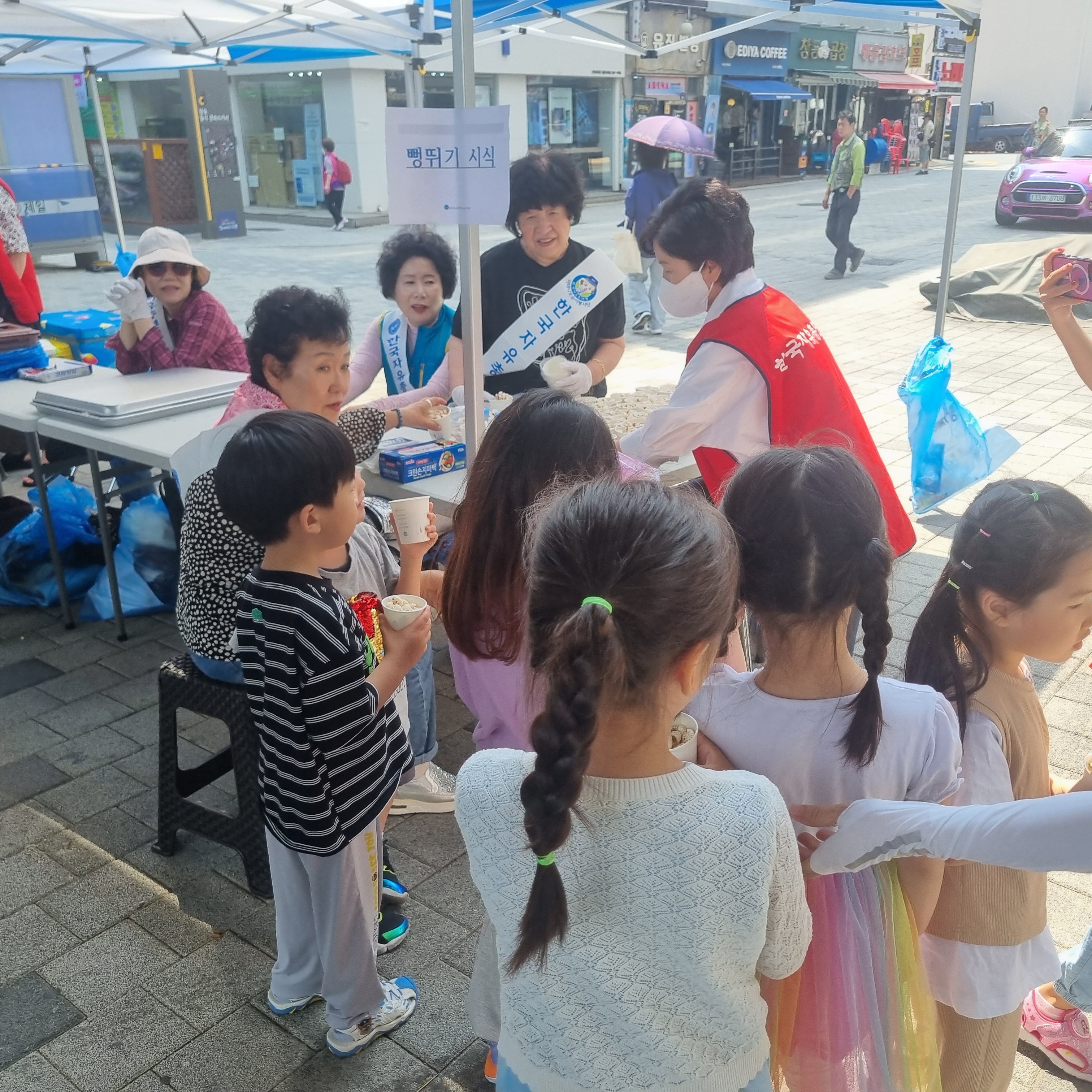강냉이 무료 시식코너 준비중이였고