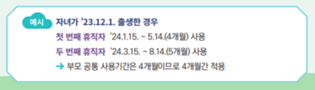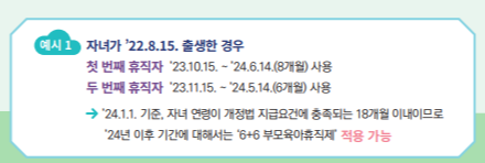 - 2024년 이전에 부모 모두 6개월 이상의 육아휴직을 사용한 경우는 제외됩니다.