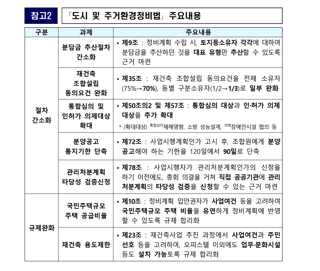 재건축, 재개발 복잡한 절차 간소화 주요 내용