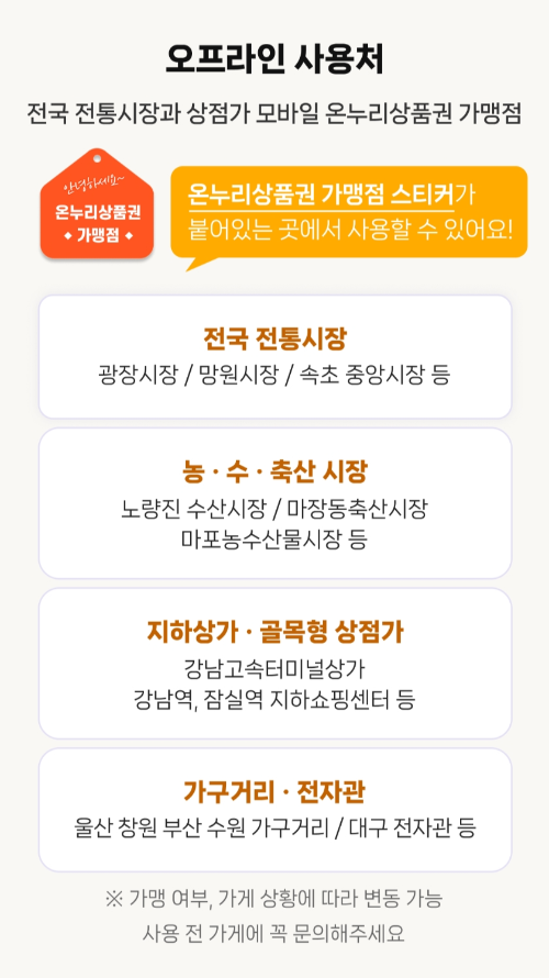 전국 전통시장과 상점가 모바일 온누리상품권 가맹점에서 사용이 가능합니다.