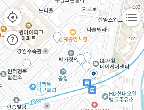 화면에 나타나는 주변 상점들을 확인합니다.