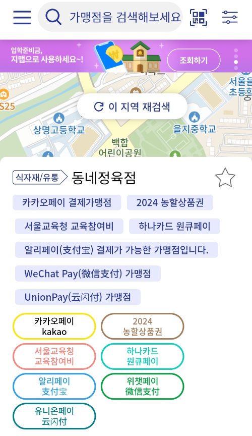 대한민국 농할상품권 가맹점은 제로페이 가맹점찾기 앱 '지맵'에서 확인이 가능합니다.