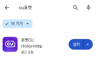 1, 제일 먼저 플레이 스토에서 CU포켓을 다운로드 받아주세요.