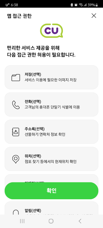 2, 앱접근 권한에서 확인을 눌러주세요.