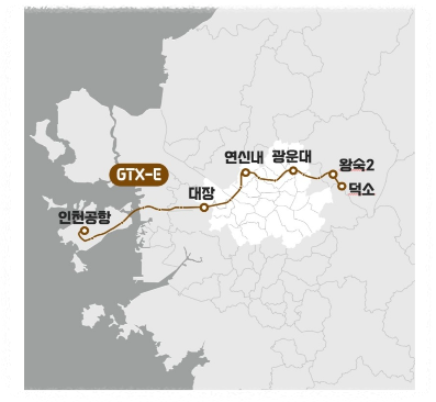 GTX-E노선은 인천공항에서 서울 북부를 거쳐서 경기 남양주까지 연결되는 노선입니다.