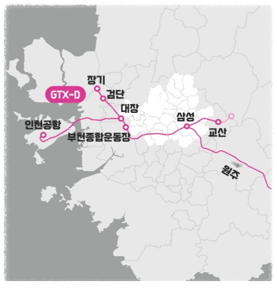 부천에서는 대장역에서 GTX-D노선으로 환승해서 강남, 삼성역으로 빠르게 접근할수 있을 거라 예상됩니다.