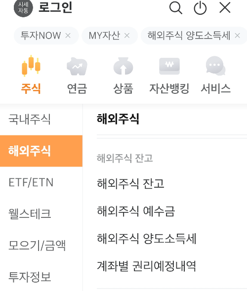 1. 미래에셋 증권 로그인을 하면 해외주식에서