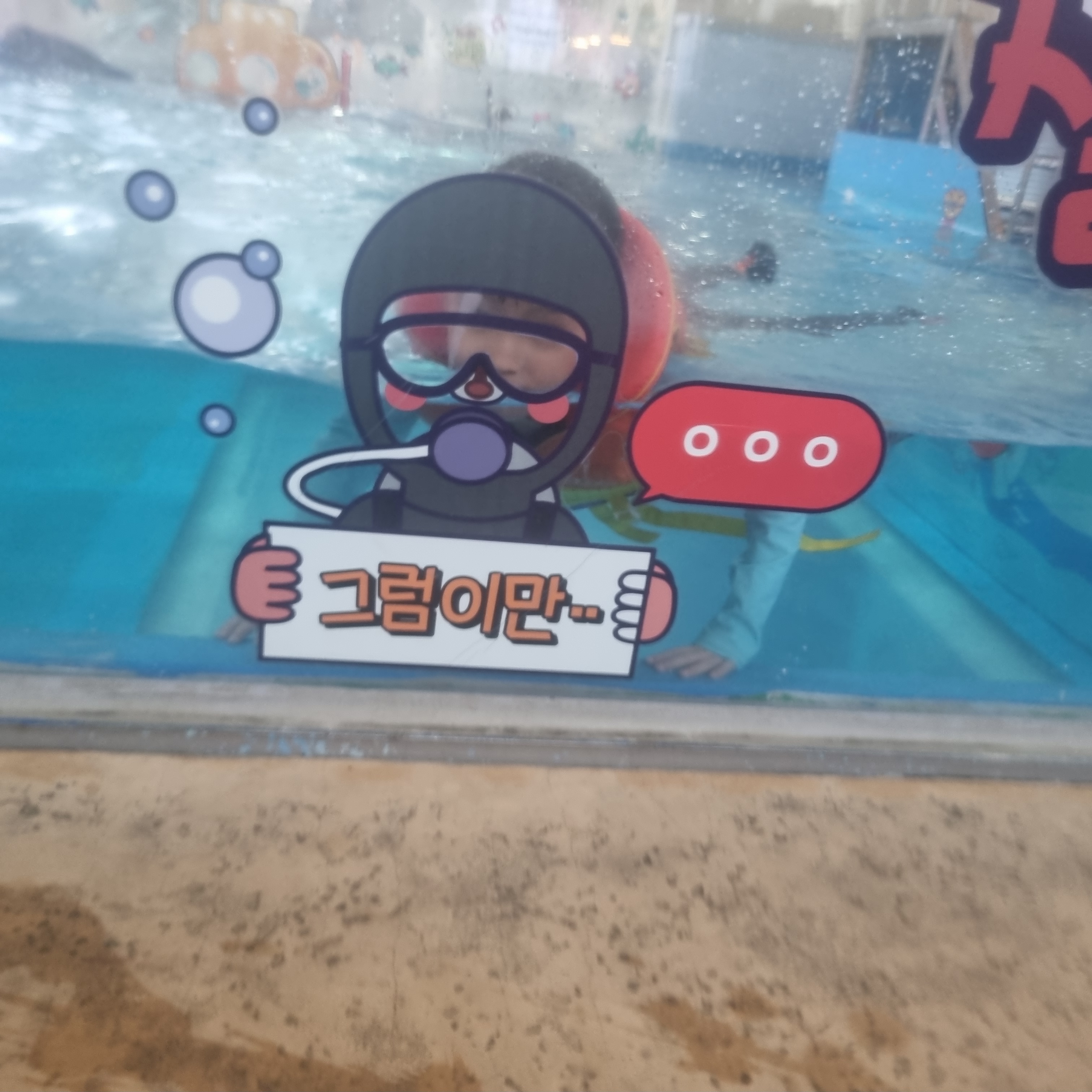 스노쿨링 옆쪽에서는 물놀이하는 공간에 포토존이 있어요.
